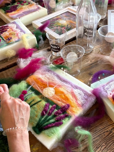 Explore your creativity while socializing at our craft parties. From needle felting to stained glass, we provide a welcoming space for both adults and children to learn and create together.